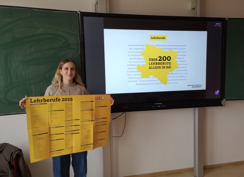 Frau Riess erzählte den 3. Klassen alles Wissenswerte rund ums Thema Lehre. Wir danken Frau Riess und der WKO für diese Aktion!